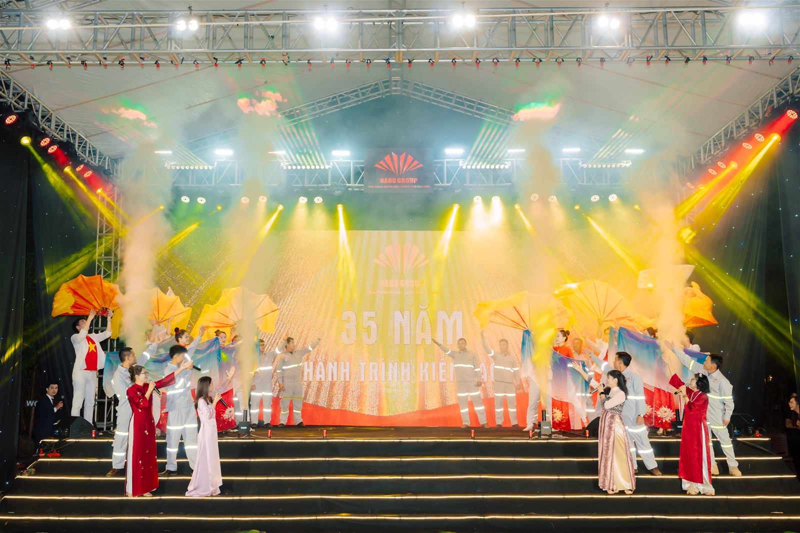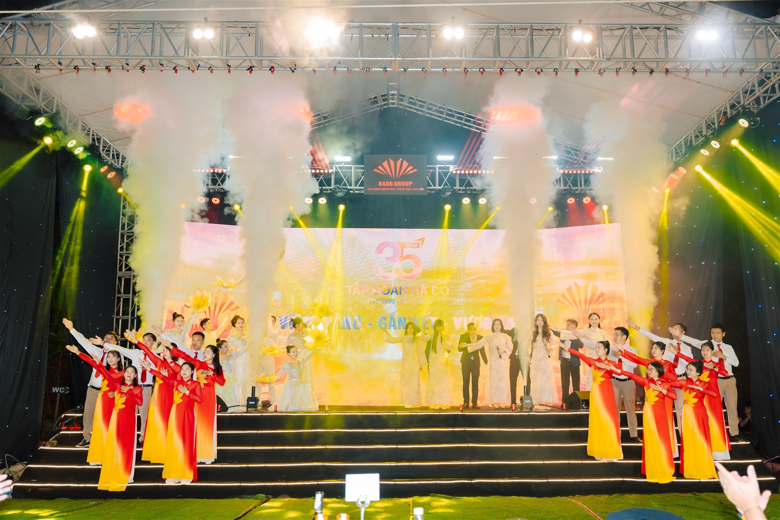 Buổi tối, Lễ kỷ niệm chính thức được tổ chức trang trọng, mở đầu bằng những tiết mục nghệ thuật tái hiện hành trình 35 năm – từ những ngày đầu gian khó đến vị thế vững vàng hôm nay. Những chia sẻ xúc động của Chủ tịch Sáng lập và Chủ tịch HĐQT đã khơi dậy niềm tự hào, truyền cảm hứng và củng cố niềm tin về khát vọng chinh phục những tầm cao mới của Hà Đô.
