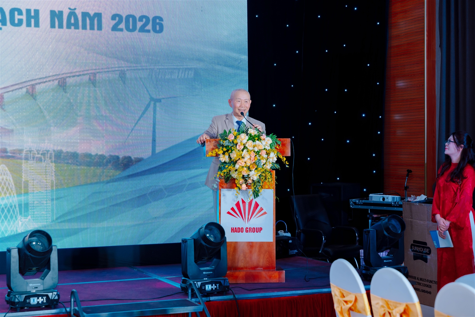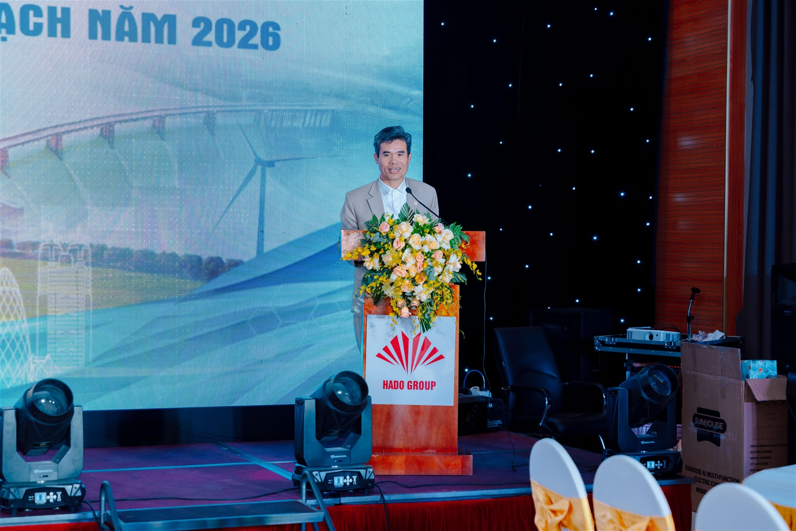 Phát biểu tại Hội nghị, Ban Lãnh đạo Tập đoàn ghi nhận và đánh giá cao tinh thần trách nhiệm, sự đoàn kết và nỗ lực không ngừng của toàn thể CBCNV trong năm 2025 - một năm nhiều thử thách nhưng cũng thể hiện rõ bản lĩnh và chiều sâu nội lực của Hà Đô. Lãnh đạo Tập đoàn nhấn mạnh sứ mệnh xuyên suốt của Hà Đô là tạo ra những sản phẩm tốt lành, có sức cạnh tranh cao, đóng góp tích cực cho xã hội và đất nước, hướng tới sự phát triển vững bền.